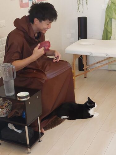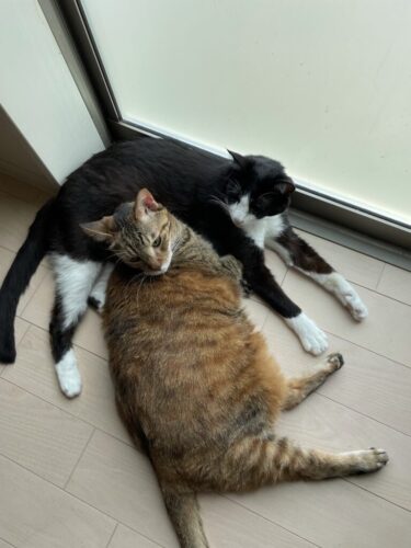 猫たちも、よもぎの香りが漂うお部屋の片隅で、